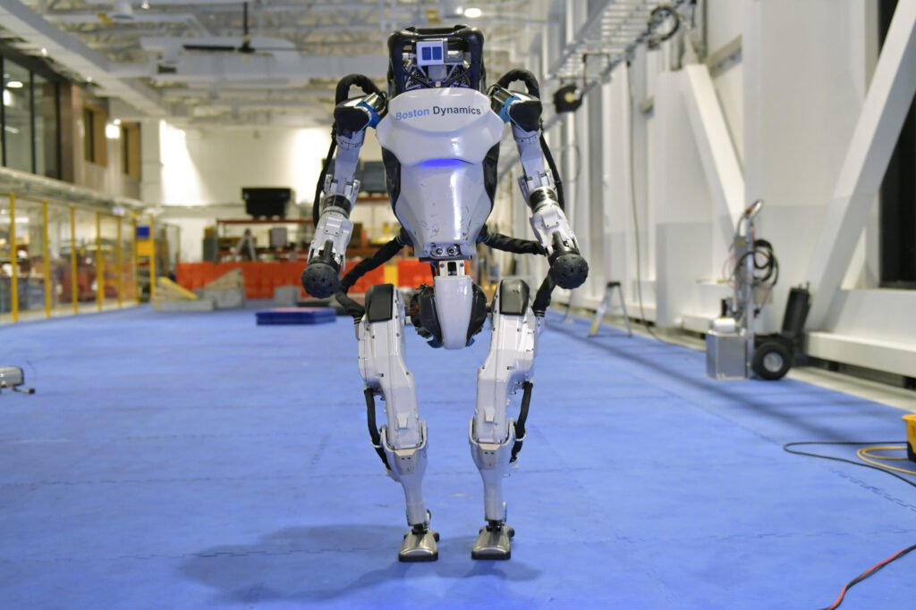 Beispiel: Ein berühmtes Beispiel für einen humanoiden Roboter ist Honda’s „ASIMO“. ASIMO (entwickelt von Honda in den 2000er-Jahren) ist ein knapp 1,30 m großer zweibeiniger Roboter, der wie ein kleiner Raumfahrer aussieht. Er beherrscht das autonome Gehen auf zwei Beinen, kann Treppen steigen, Hindernissen ausweichen und sogar begrenzt rennen. ASIMO konnte Hände schütteln, Tabletts tragen und simple Handgriffe ausführen. Er wurde oft bei Vorführungen gezeigt – etwa servierte er bei Presse-Events Getränke oder trat in Technologie-Museen auf, um die Fähigkeiten der Robotik zu demonstrieren. Ein aktuelleres Beispiel für humanoide Robotik ist Atlas vom Unternehmen Boston Dynamics. Atlas ist ein fortschrittlicher, etwa 1,5 m großer Humanoid, der in Internetvideos durch seine beeindruckenden Fähigkeiten bekannt wurde: Er kann komplexe Parcours laufen, springen, sich abfangen, Objekte werfen und sogar einen Rückwärtssalto ausführen. Atlas ist allerdings ein Forschungsprototyp und wird (noch) nicht kommerziell eingesetzt – er dient vor allem dazu, die Grenzen der Bewegungssteuerung und Dynamik auszuloten. Beide Beispiele zeigen unterschiedliche Aspekte: ASIMO repräsentiert den humanoiden Roboter als freundlichen Assistenten, während Atlas das Potential an Beweglichkeit und Leistung demonstriert, das moderne Robotik erreichen kann.
